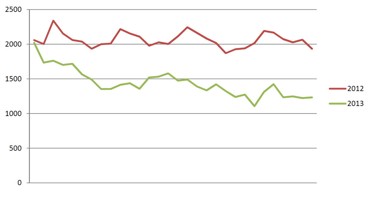 Continuing on from the previous reports we compared statistical data of the period November 2012 – December 2012 and November 2013 - December 2013 and noticed a decrease in mobile device use, this includes tablet device.